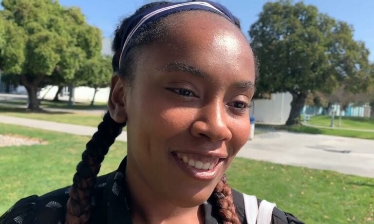 Ray Comfort evangelizes to a young woman who doesn’t know if God exists or not.