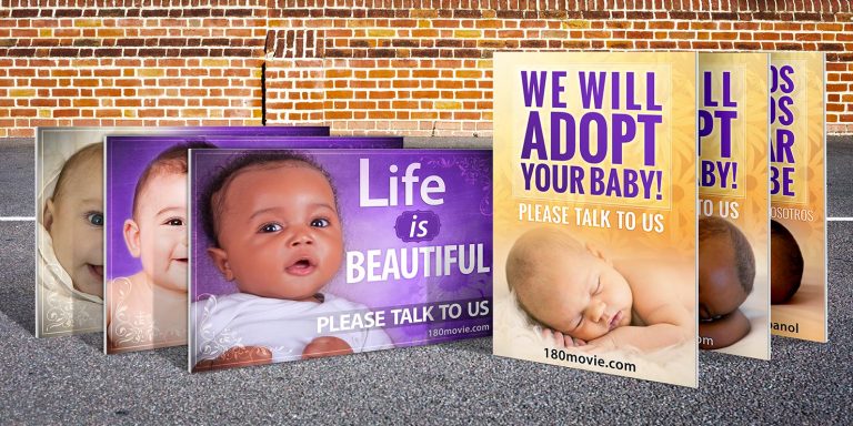 This is an engaging sign to encourage those heading toward an abortion clinic to pause and remember that “Life is Beautiful.” It also invites them to speak with you.