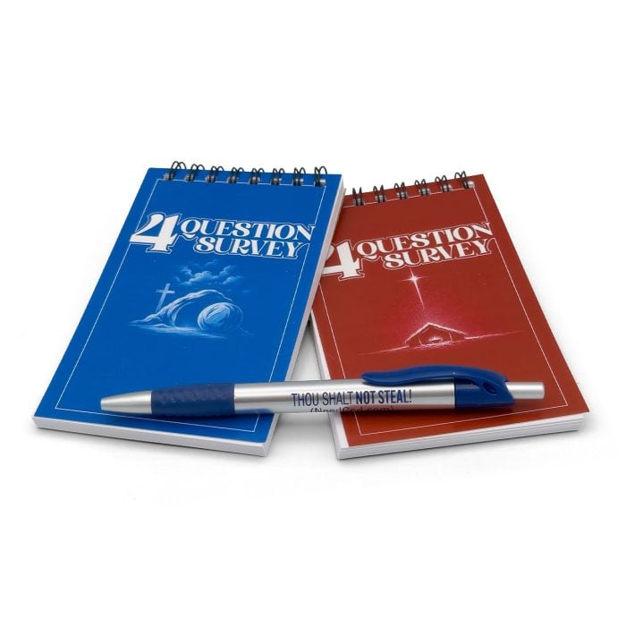 Here’s how it works. You’re simply say, “Hi. We’re doing a four-question survey to gauge spiritual beliefs. You’ll get a free Ten Commandments coin and a million dollar bill just for answering. Here are the four simple questions: Is there life after death? Do you get to heaven by being a good person? Have you broken any of the Ten Commandments? Why did Jesus die on the cross?”