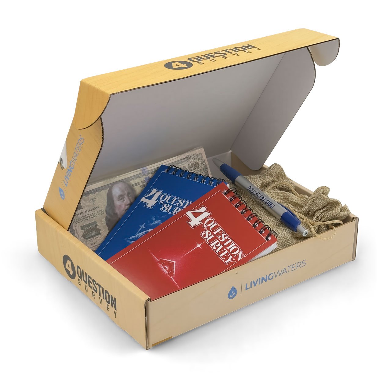 Here’s how it works. You’re simply say, “Hi. We’re doing a four-question survey to gauge spiritual beliefs. You’ll get a free Ten Commandments coin and a million dollar bill just for answering. Here are the four simple questions: Is there life after death? Do you get to heaven by being a good person? Have you broken any of the Ten Commandments? Why did Jesus die on the cross?”